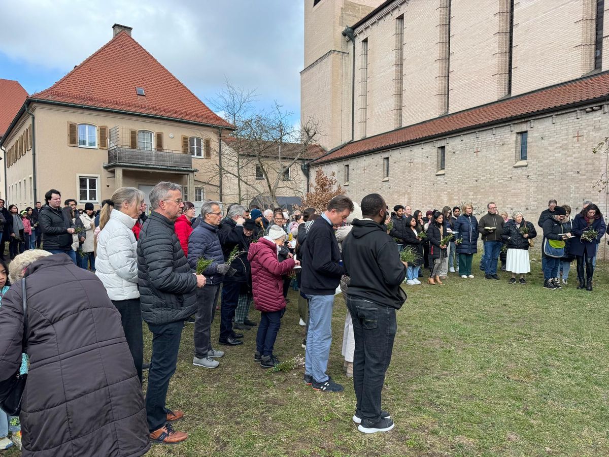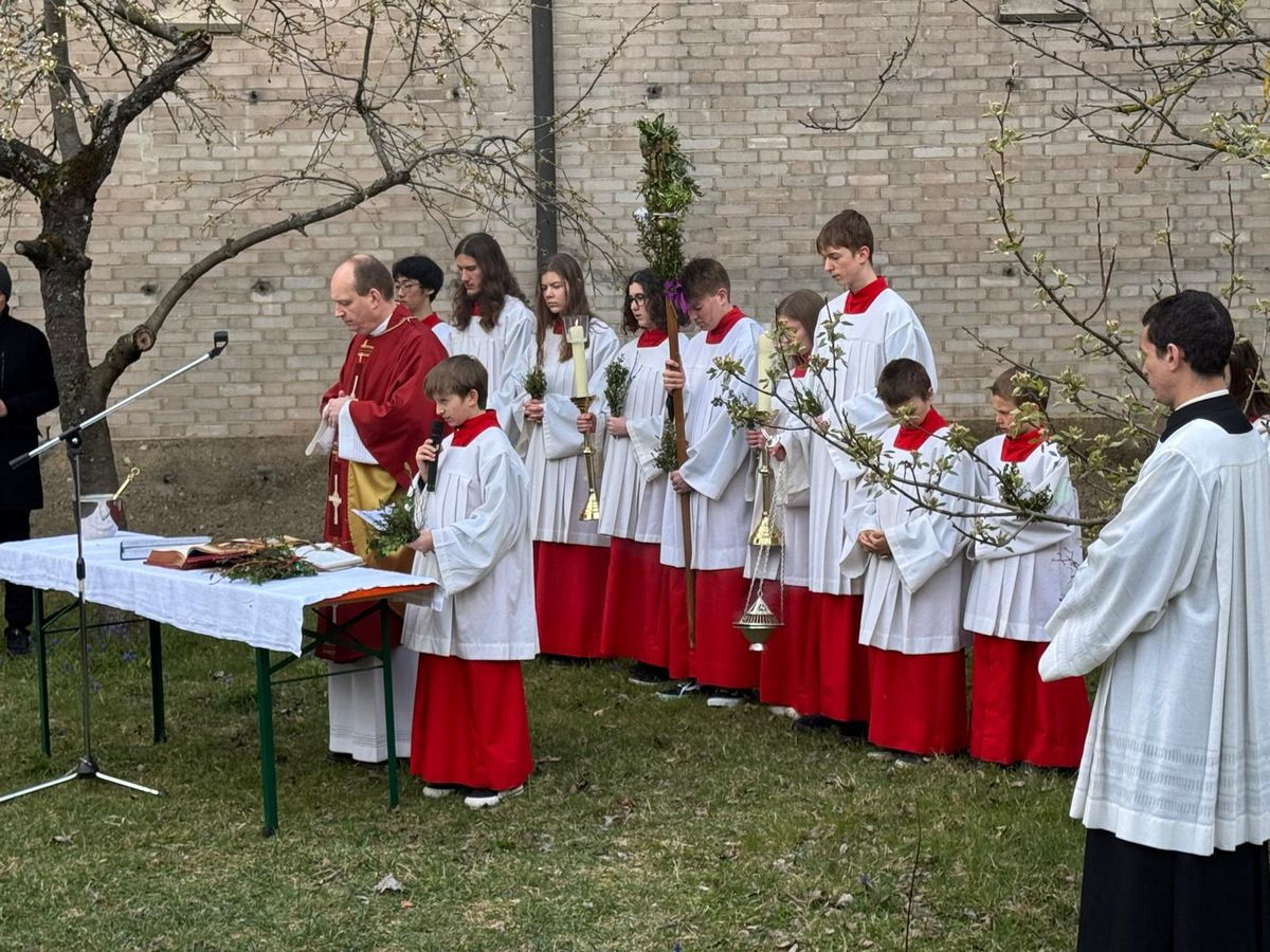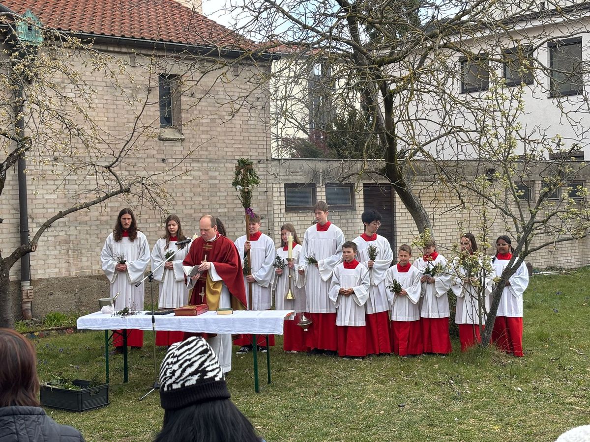An Palmsonntag feierten wir den Gottesdienst mit selbst gebastelten Palmbuschen bei uns im Pfarrgarten ๐๐ฟ